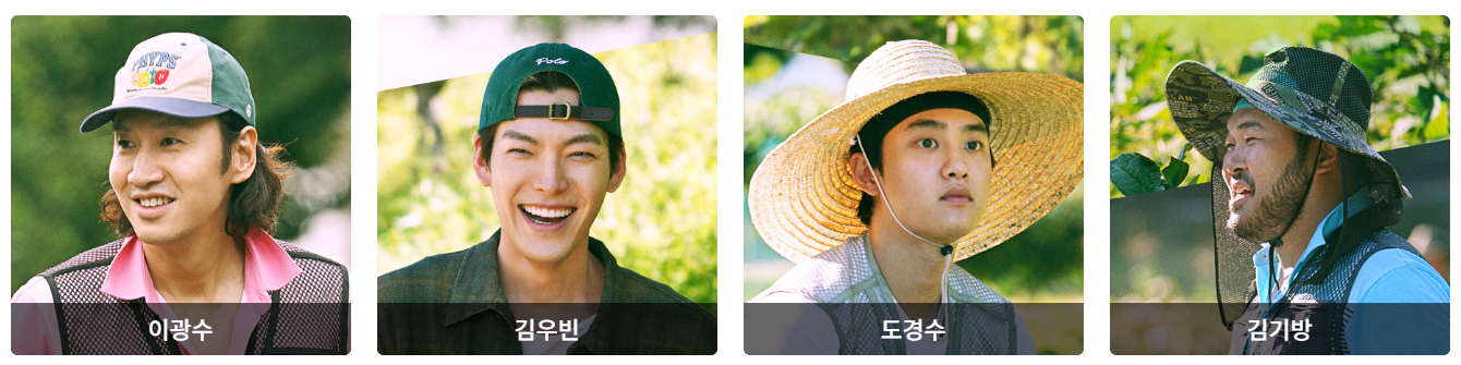 콩콩팥팥 출연진은 이광수, 김우빈, 도경수, 김기방입니다.