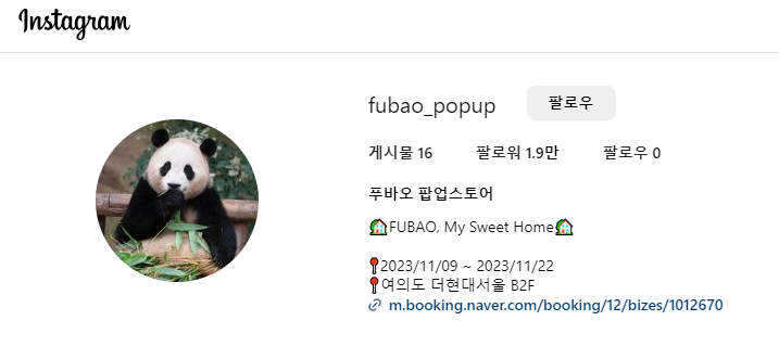 푸바오 팝업스토어는 에버랜드 판다 '푸바오'를 주인공으로 꾸민 팝업스토어 입니다. 운영기간은 2023. 11. 9(목) ~ 22(수) 까지 입니다. 11.13(월)은 휴무 입니다.