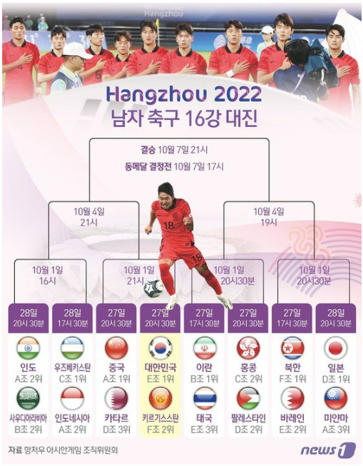2. 항저우 아시안게임 축구 주요 경기 일정